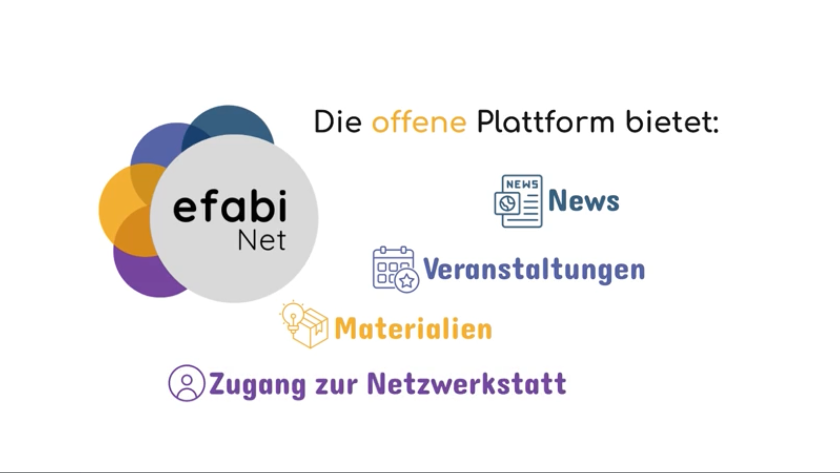 Die Plattform efabi wird nach und nach eine Form bekommen, die mit allen Interessierten genau zu prüfen sein wird. Wer sich jetzt bereits einschalten und mitdenken möchte, ist herzlich eingeladen. Bei Interesse wenden Sie sich an Ulrike Stephan oder Simone Wustrack.